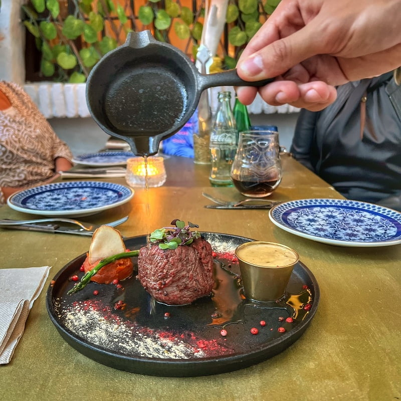 Vlees, vis en andere mediterrane specialiteiten voor het uitkiezen. Van eenvoudig tot enorm uitgebreid en allemaal met grote zorg bereid en opgemaakt. Elk gerecht is een lust voor het oog!